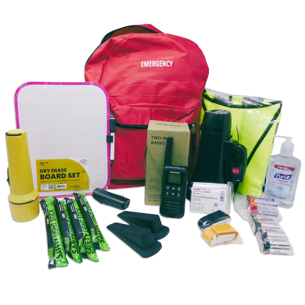 Emergency Weather Kit Contains: 1 - Magnetic Dry Erase Board 1 - Megaphone Speaker Bullhorn 1 - 22 channel 2-way radio 1 - Portable Smart Phone Charger 4 - Glow Sticks Individually Wrapped 1 - High Vis Safety Vest 2 - Rescue Blanket Silver 1 - Black Plastic Whistle w/ Lanyard 1 - Flashlight Standard D size 2 - D Batteries 1 - 4"x4" 2 mil Ziplock Bag 4 - C Batteries 1 - 3"x5"x2 mil Reclosable Bag 4 - AAA Batteries 1 - 2"x2"x2 mil Reclosable Bag 1 - Printed Card "Emergency Weather" 1 - Red Medical Backpack 1 - Purell Original IHS 12oz Bottle 2 - Medical Buckle Tourniquet 2 - Black Crosize Door Stopper $25 MINUMUM ORDER REQUIRED: THE COMBINED TOTAL OF ALL “FIRST AID" ITEMS MUST BE $25 OR MORE. Unit of Measure: EA. QNA Item Number: 129255 Delivery Within (Business Days): 10